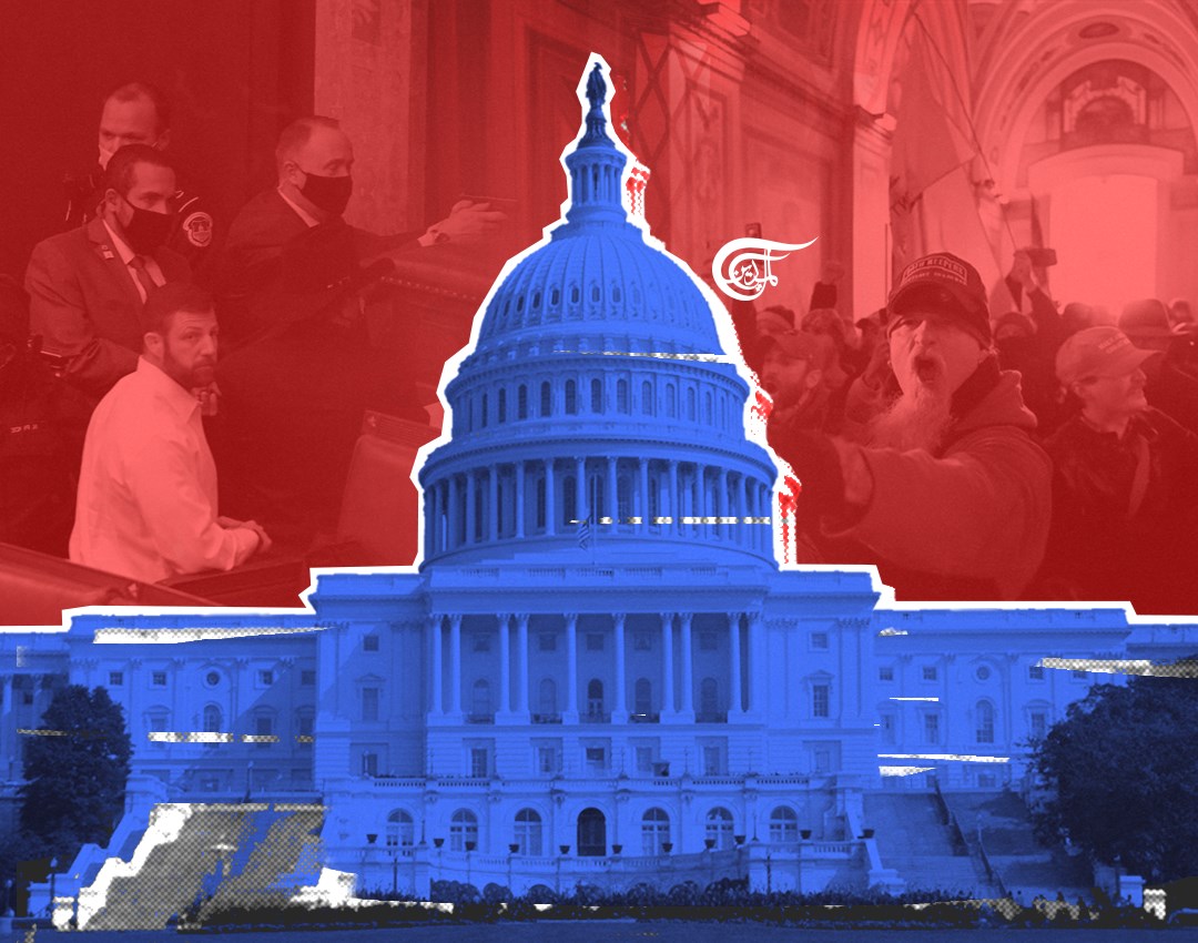 في ليلة غير مسبوقة، اقتحم المئات من أنصار الرئيس الأميركي المنتهية ولايته دونالد ترامب مبنى الكونغرس خلال جلسة التصديق على نتائج الانتخابات الرئاسية وإعلان جو بايدن رئيساً للبلاد، واشتبكوا مع عناصر الشرطة، ثم اجتاحوا قاعة مجلس الشيوخ، وهنا بدأ العبث مباشرةً على الهواء؛ متظاهرٌ يحمل منبراً متنقلاً للتصريحات، ثم يبتسم لعدسة الكاميرا رافعاً شارة النصر، وآخر يناور، وذاك يغطي على مجموعته للتقدم باتجاه غرف الكونغرس، ثم يفتح عبوة مطافئ الحريق لتشتيت عناصر الشرطة، بينما يرمي أحدهم من على شرفة الكونغرس علم أميركا ويستبدله بآخر يحمل اسم "ترامب"، دقائق كانت كفيلةً بتحويل صرح أهم هيئة تشريعية في البلاد إلى ساحة حرب.